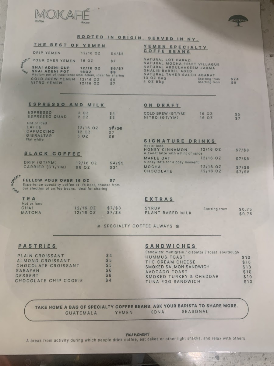What truly elevates MOKAFÉ is its inviting, stylish ambiance—ideal for both winding down and focusing. Coupled with attentive service, it makes every visit feel personal and enjoyable. Whether it's a robust cup of Yemen Chai Adeni tea or a creamy pistachio latte, MOKAFÉ crafts experiences that linger delightfully.